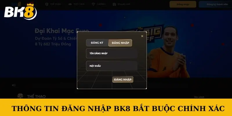 Đầu tiên, truy cập vào trang chủ của Bk8 qua trình duyệt web hoặc app di động chính thức. Sau đó, nhấn vào nút “Đăng nhập” (Login) thường nằm ở góc trên bên phải. Hệ thống sẽ yêu cầu bạn nhập tên tài khoản và mật khẩu đã đăng ký trước đó.
